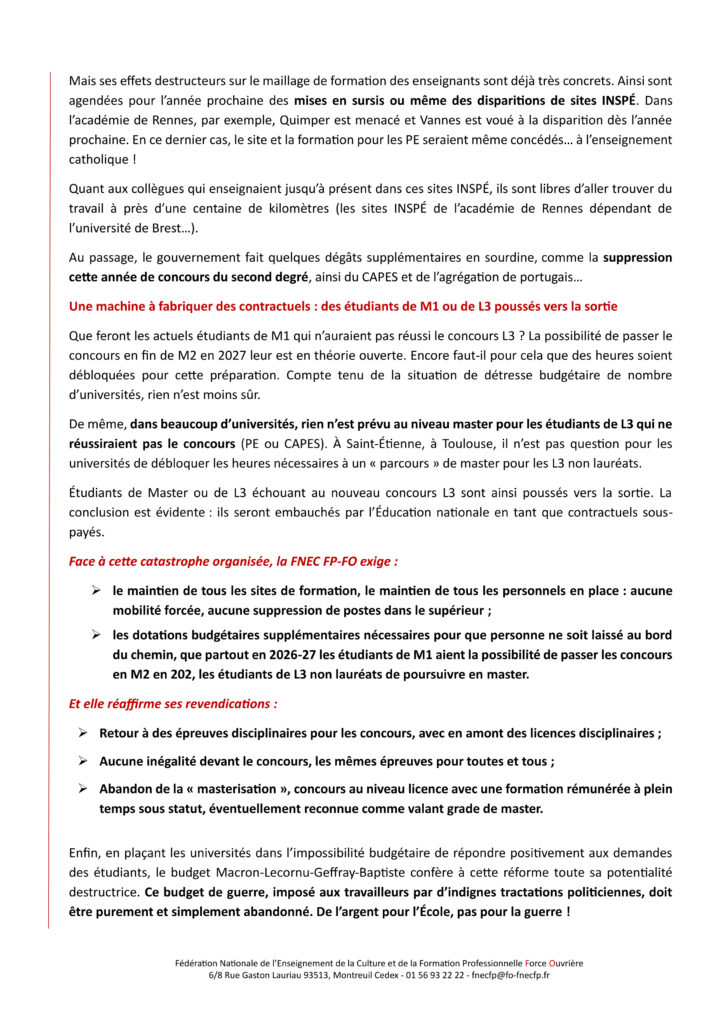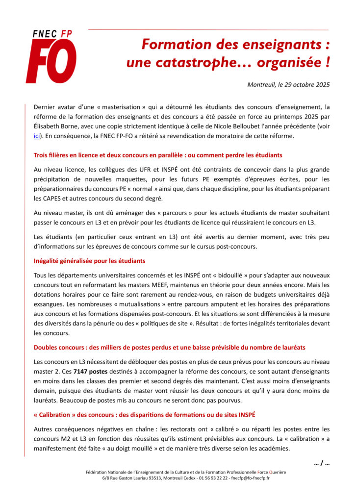 Formation des enseignants : une catastrophe… organisée ! de snfolc-toulouse On 3 novembre 2025 dans FNEC FP FO 25 10 29 – Formation des enseignants – une catastrophe organiséeTélécharger Précédent La Protection Sociale Complémentaire : une attaque contre la sécurité sociale !